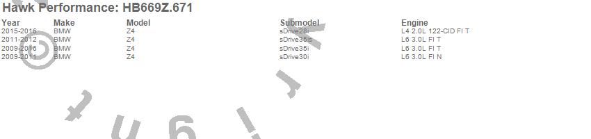 Below is an abreviated list of applications for the Disc Brake Pad. Z4, BMW, 2016, 2015, 2014, 2013, 2012, 2011, 2010, 2009 more…