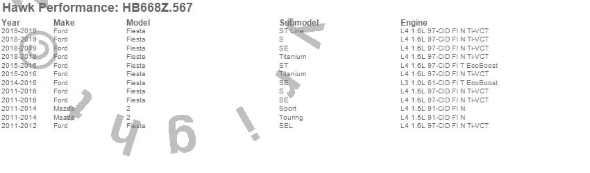 Hawk Performance Disc Brake Pad # HB668Z.567 - Performance Ceramic w/0.567 Thickness