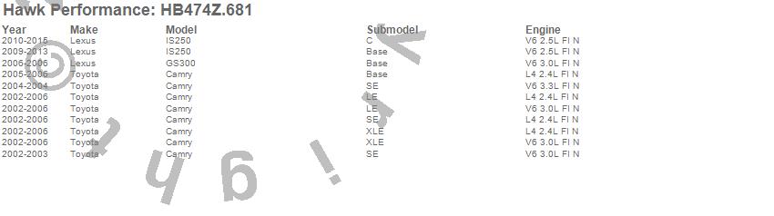 Hawk Performance Disc Brake Pad # HB474Z.681 - Performance Ceramic w/0.681 Thickness