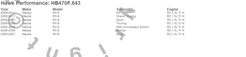 Below is an abreviated list of applications for the Disc Brake Pad.