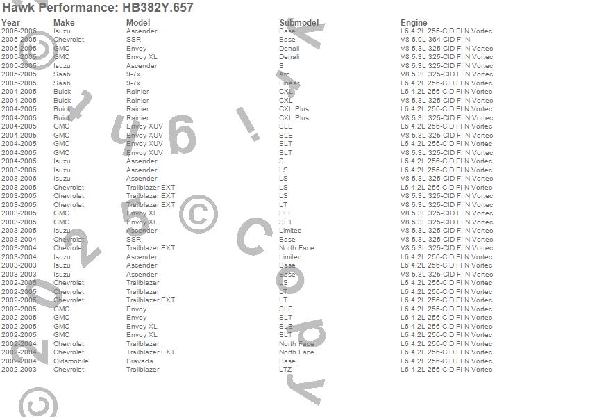 Hawk Performance Disc Brake Pad # HB382Y.657 - LTS w/0.657 Thickness