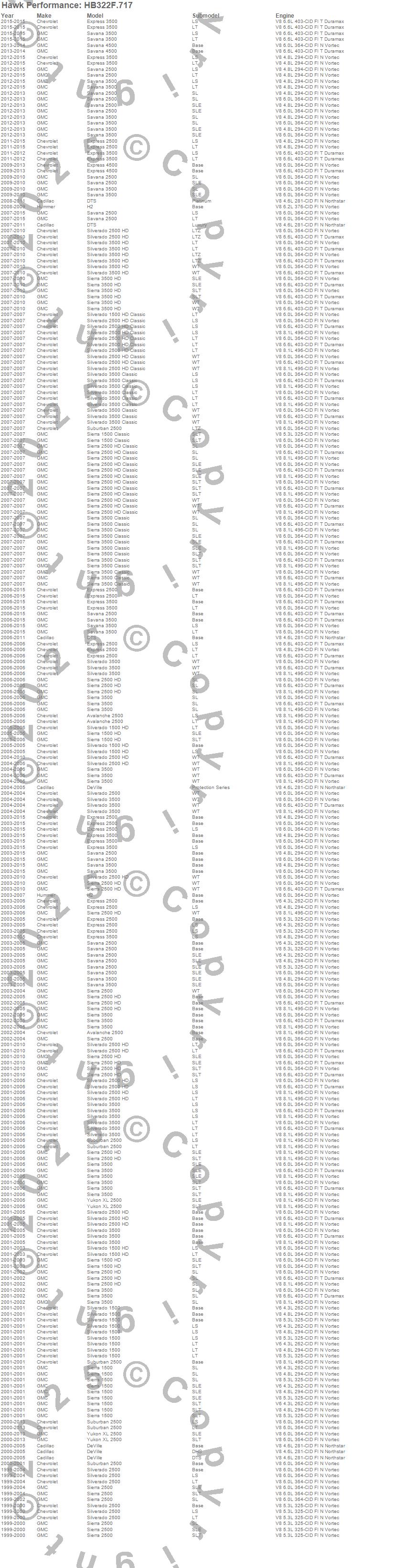 Below is an abreviated list of applications for the Disc Brake Pad.