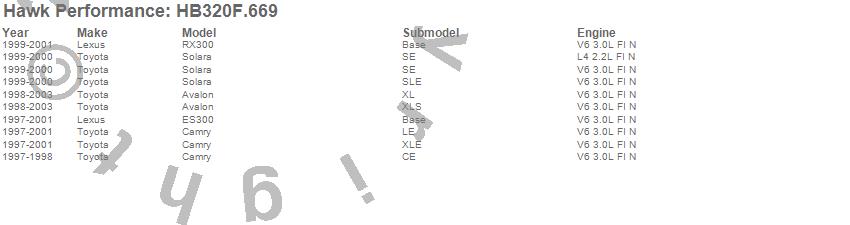 Hawk Performance Disc Brake Pad # HB320F.669 - HPS Performance Street w/0.669 Thickness