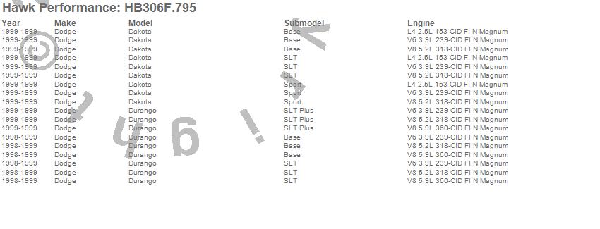 Hawk Performance Disc Brake Pad HB306F.795 Features: