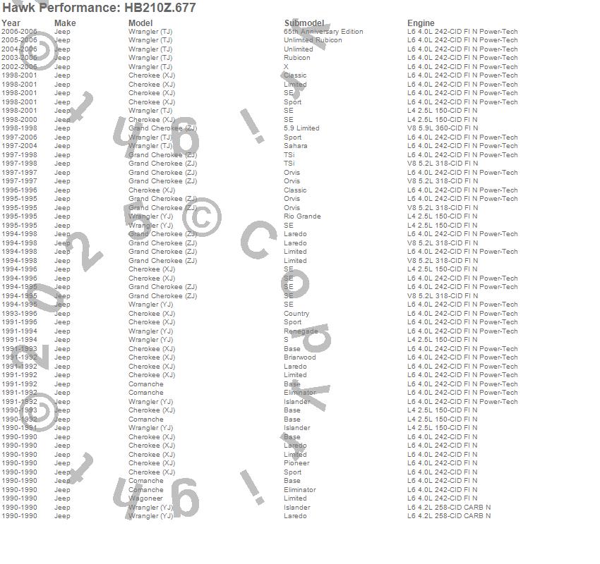 Below is an abreviated list of applications for the Disc Brake Pad.