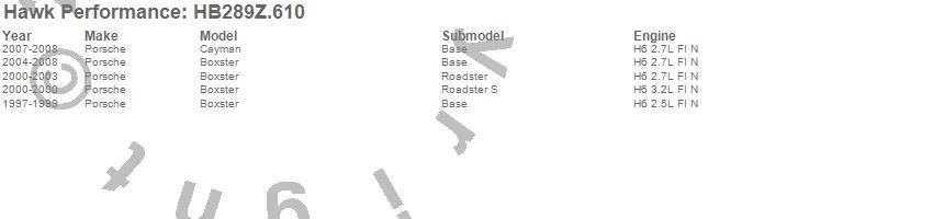 Hawk Performance Disc Brake Pad # HB289Z.610 - Performance Ceramic w/0.610 Thickness