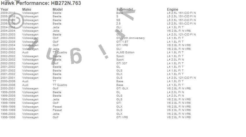 Below is an abreviated list of applications for the Disc Brake Pad.