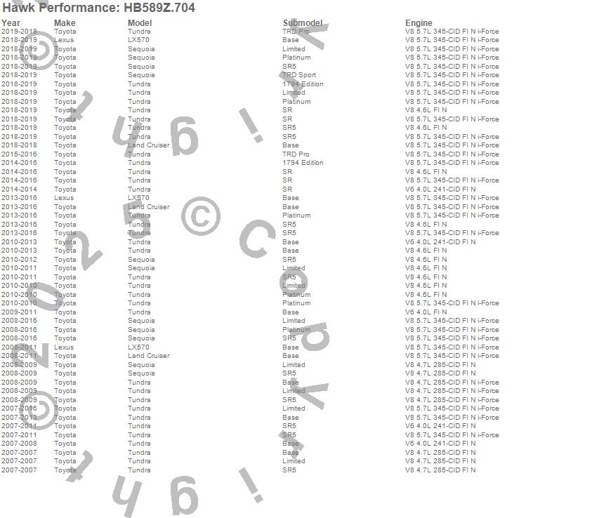 Hawk Performance Disc Brake Pad # HB589Z.704 - Performance Ceramic w/0.704 Thickness