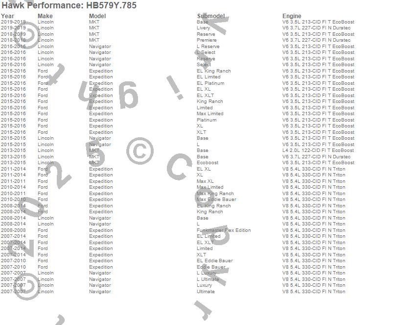 Hawk Performance Disc Brake Pad # HB579Y.785 - LTS w/0.785 Thickness