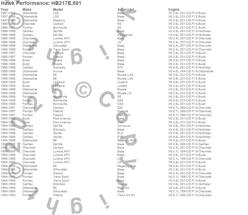 Hawk Performance Disc Brake Pad # HB217E.681 - Blue 9012 w/0.681 Thickness