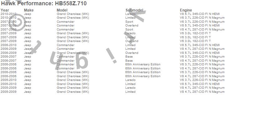 Below is an abreviated list of applications for the Disc Brake Pad.