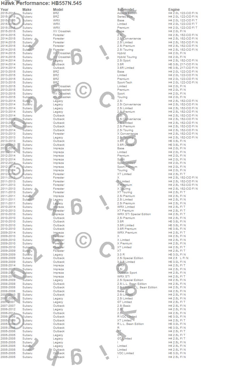 Hawk Performance Disc Brake Pad # HB557N.545 - HP Plus w/0.545 Thickness