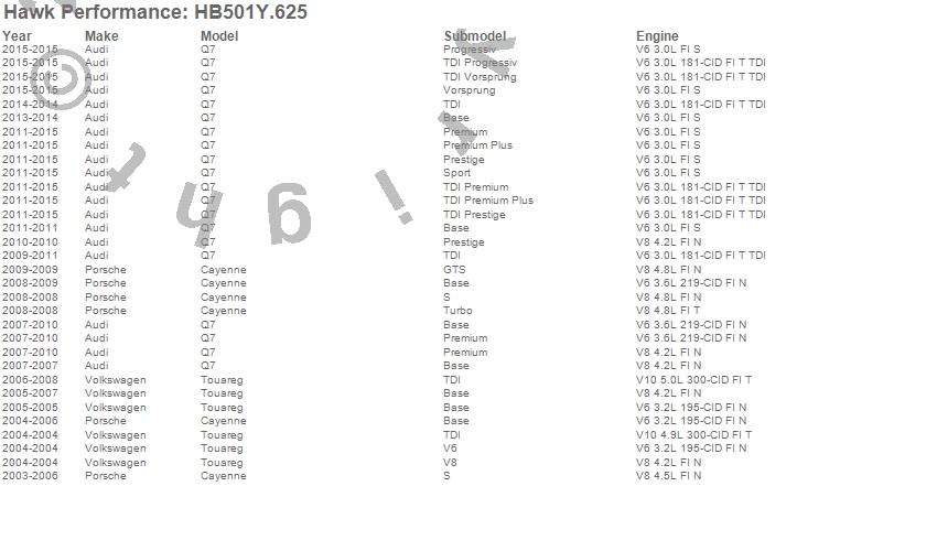 Below is an abreviated list of applications for the Disc Brake Pad.