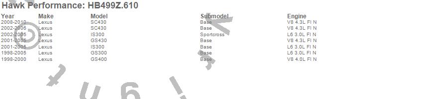 Below is an abreviated list of applications for the Disc Brake Pad.