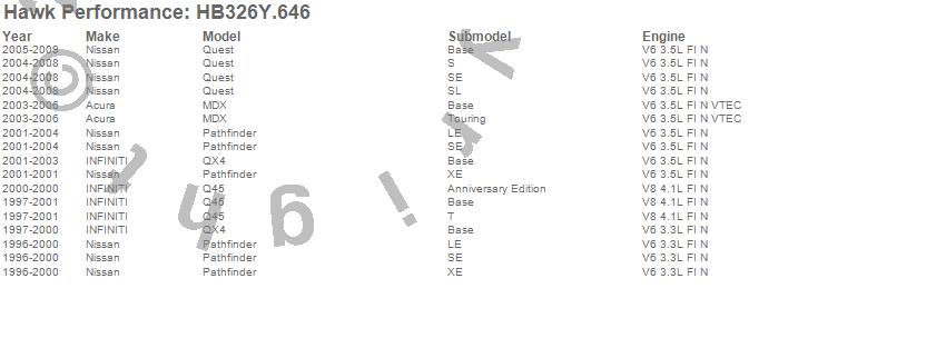 Hawk Performance Disc Brake Pad # HB326Y.646 - LTS w/0.646 Thickness