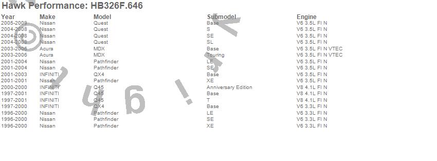 Hawk Performance Disc Brake Pad # HB326F.646 - HPS Performance Street w/0.646 Thickness