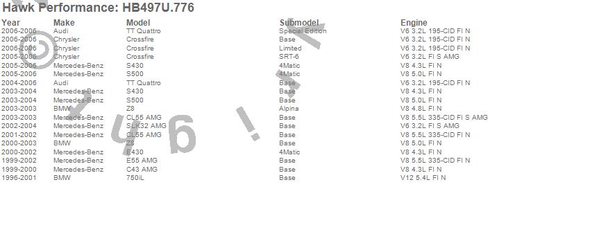 Below is an abreviated list of applications for the Disc Brake Pad.