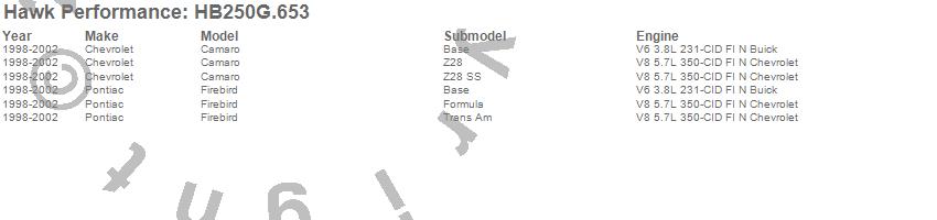 Hawk Performance Disc Brake Pad HB250G.653 Features: