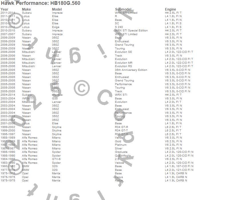 Below is an abreviated list of applications for the Disc Brake Pad.