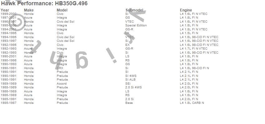 Below is an abreviated list of applications for the Disc Brake Pad.