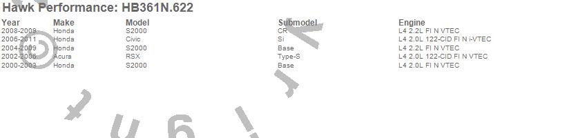 Hawk Performance Disc Brake Pad # HB361N.622 - HP Plus w/0.622 Thickness
