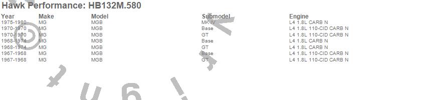 Hawk Performance Disc Brake Pad # HB132M.580 - Black w/0.580 Thickness