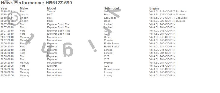 Hawk Performance Disc Brake Pad # HB612Z.690 - Performance Ceramic w/0.690 Thickness