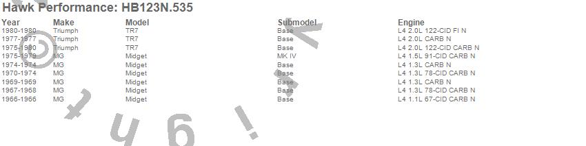Below is an abreviated list of applications for the Disc Brake Pad.