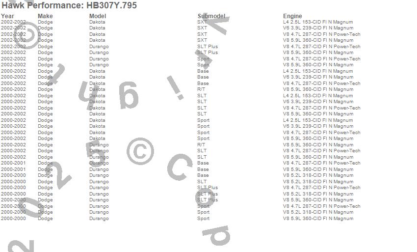 Hawk Performance Disc Brake Pad HB307Y.795 Features: