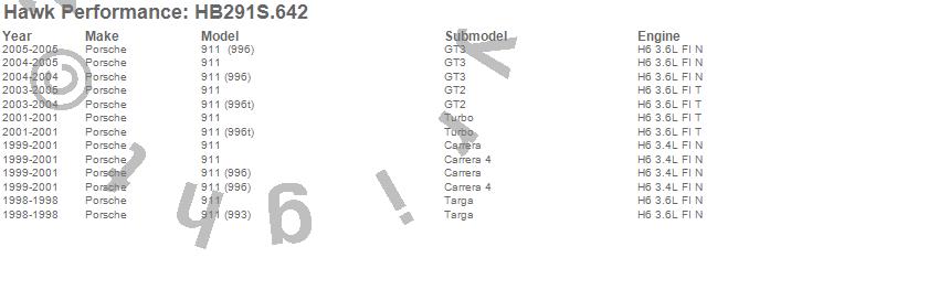 Below is an abreviated list of applications for the Disc Brake Pad. 911, Porsche, 2005, 2004, 2003, 2001, 2000, 1999, 1998 more…