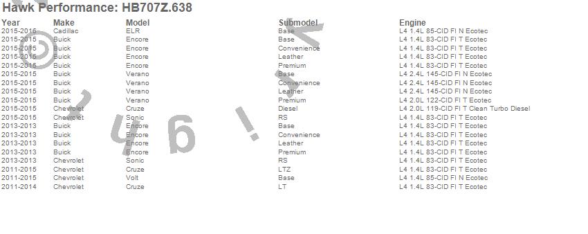 Below is an abreviated list of applications for the Disc Brake Pad.
