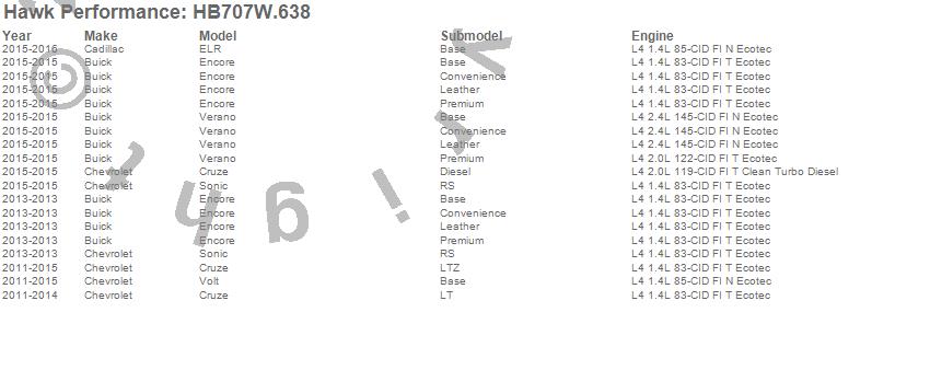 Below is an abreviated list of applications for the Disc Brake Pad.