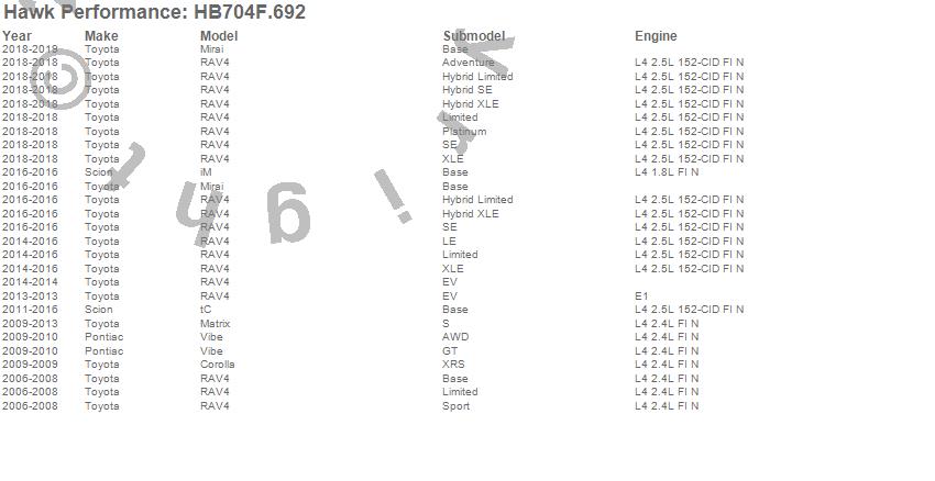 Below is an abreviated list of applications for the Disc Brake Pad.