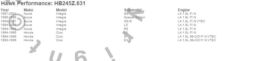 Hawk Performance Disc Brake Pad # HB245Z.631 - Performance Ceramic w/0.631 Thickness