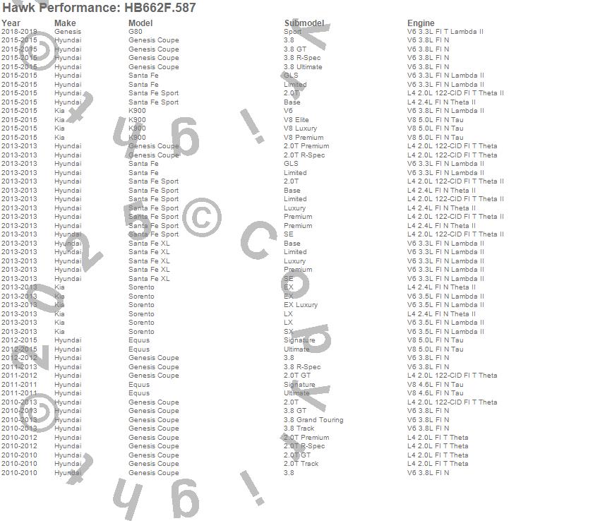 Below is an abreviated list of applications for the Disc Brake Pad.