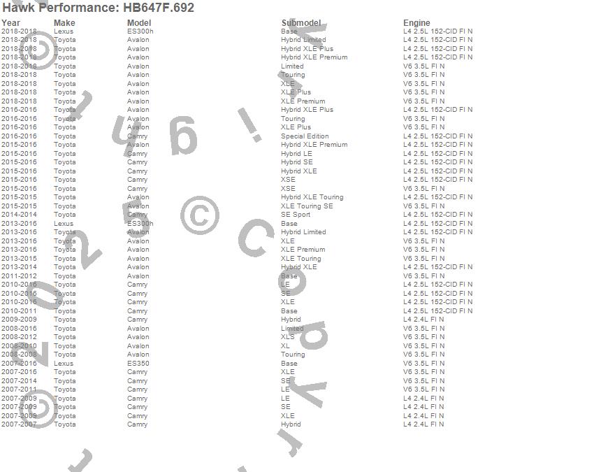 Hawk Performance Disc Brake Pad # HB647F.692 - HPS Performance Street w/0.692 Thickness