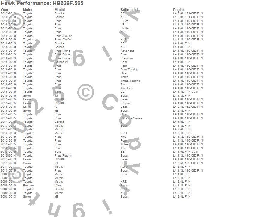 Below is an abreviated list of applications for the Disc Brake Pad.