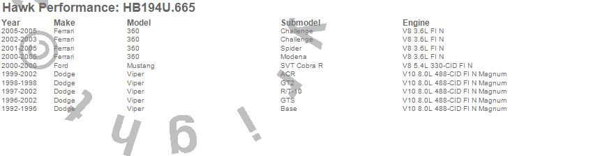 Below is an abreviated list of applications for the Disc Brake Pad.