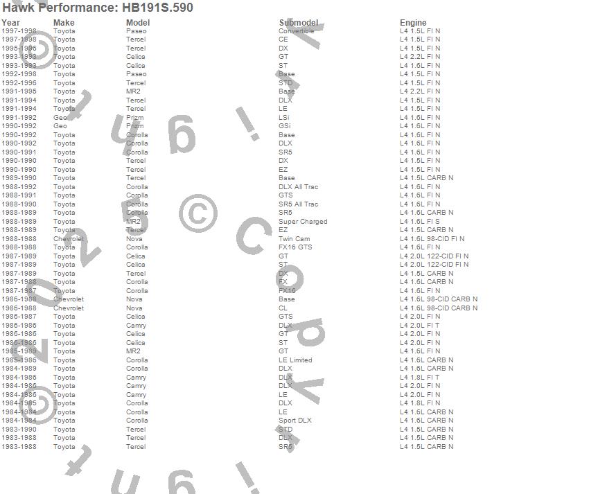 Below is an abreviated list of applications for the Disc Brake Pad.