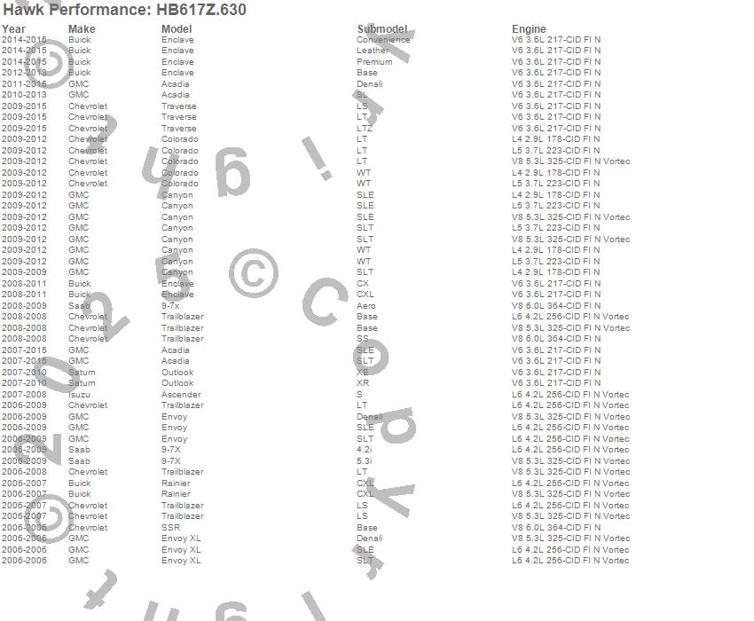 Below is an abreviated list of applications for the Disc Brake Pad.