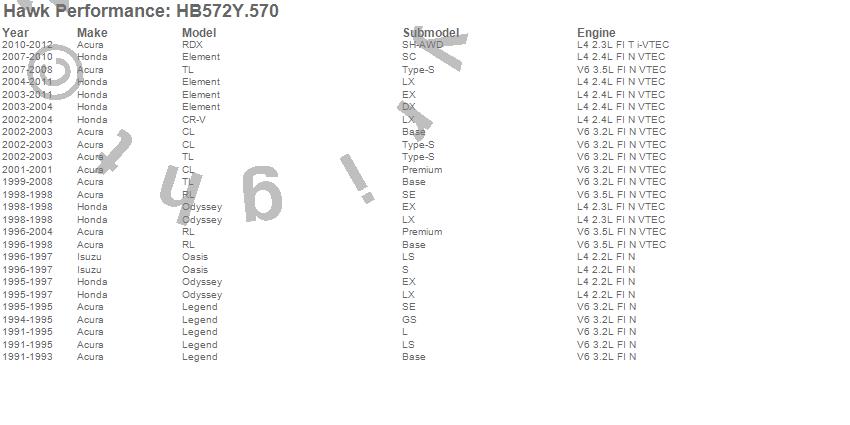 Hawk Performance Disc Brake Pad # HB572Y.570 - LTS w/0.570 Thickness - FMSI Plate #D536