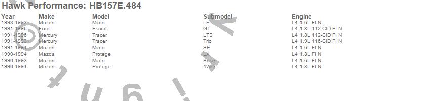 Below is an abreviated list of applications for the Disc Brake Pad.