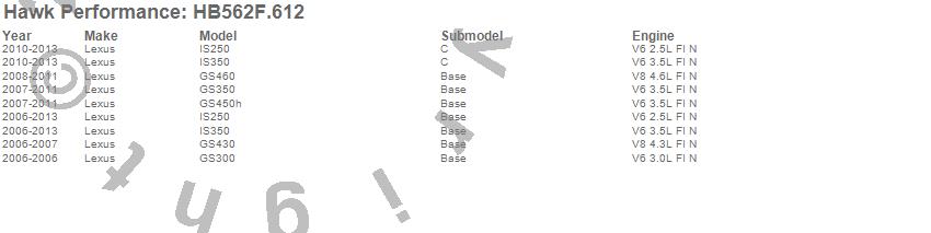 Hawk Performance Disc Brake Pad # HB562F.612 - HPS Performance Street w/0.612 Thickness