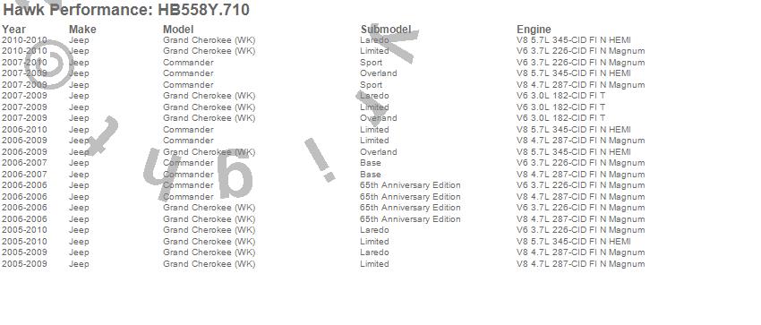 Below is an abreviated list of applications for the Disc Brake Pad. Commander, Grand Cherokee (WK), Jeep, 2010, 2009, 2008, 2007, 2006, 2005 more…