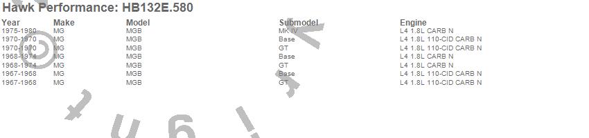 Below is an abreviated list of applications for the Disc Brake Pad.