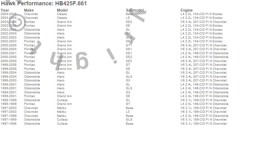 Below is an abreviated list of applications for the Disc Brake Pad.