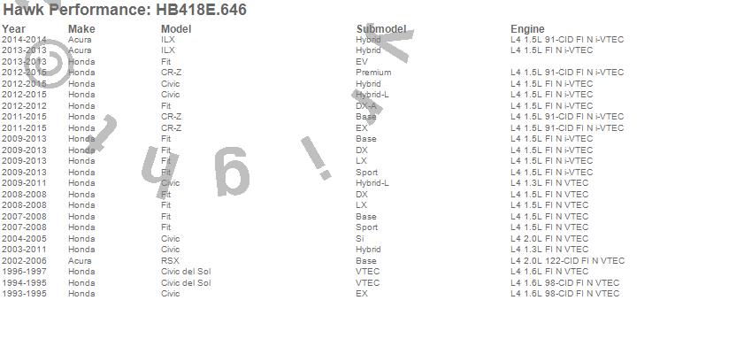 Below is an abreviated list of applications for the Disc Brake Pad.