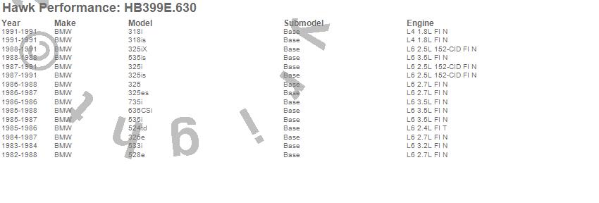 Below is an abreviated list of applications for the Disc Brake Pad.
