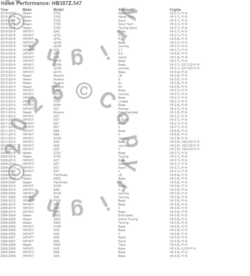 Hawk Performance Disc Brake Pad # HB387Z.547 - Performance Ceramic w/0.547 Thickness