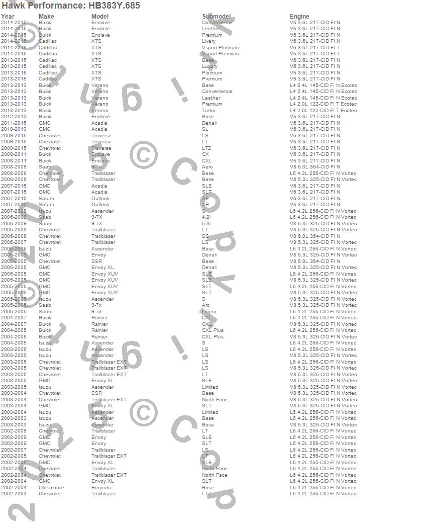 Hawk Performance Disc Brake Pad # HB383Y.685 - LTS w/0.685 Thickness